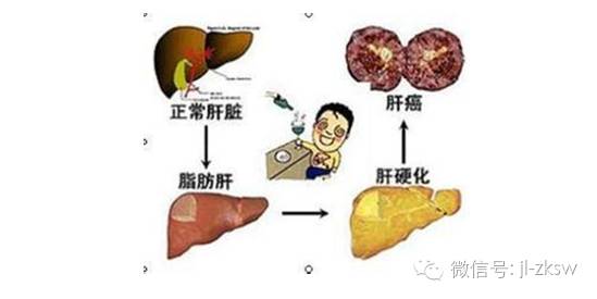 酒精性肝病在病理上表现为三步曲:酒精性脂肪肝→酒精性肝炎→酒精性肝硬化,三者常有重叠存在。一般而言,平均每日摄入乙醇80g达10年以上才会发展为酒精性肝硬化。最终结果有可能引发肝癌。